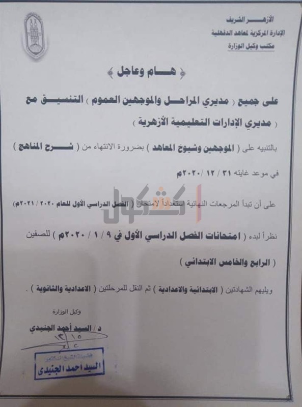 أصدر قطاع المعاهد الأزهرية، تعليماته لجميع المناطق بضرورة التنبيه على الموجهين وشيوخ المعاهد بضرورة الانتهاء من شرح المناهج في موعد غايته 31 من ديسمبر الجاري.