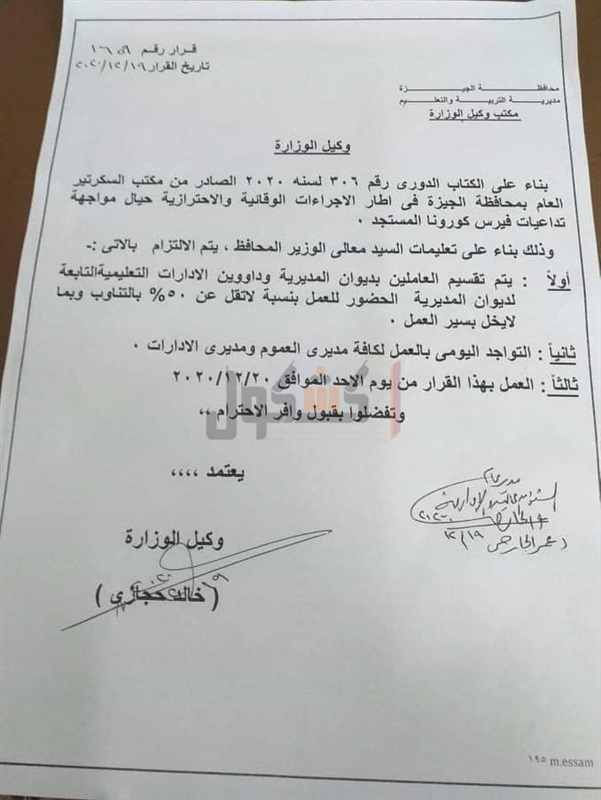 - العمل بهذا القرار من يوم الأحد 20/12/2020.