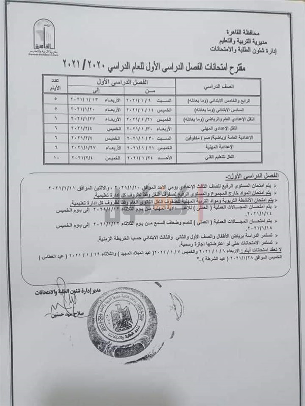 أصدرت مديرية التربية والتعليم بالقاهرة، مقترح امتحانات الفصل الدراسي الأول للعام الدراسي 2020/2021.