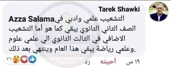 أنه من العام المقبل سيكون التشعيب علمي فقط او أدبي، وليس علمي علوم وعلمي رياضة.