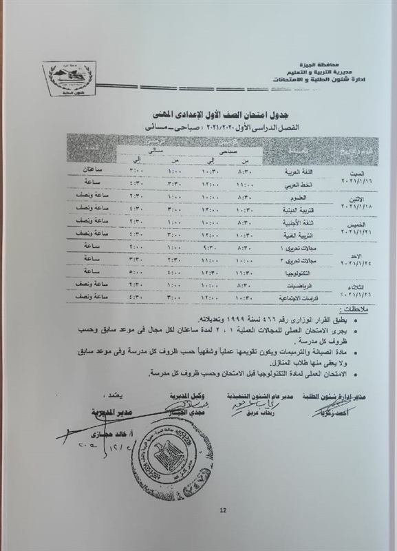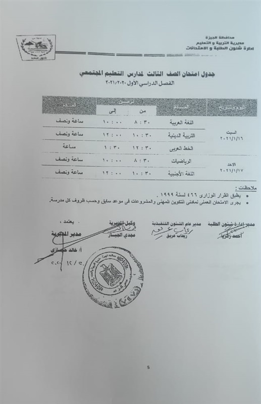 جداول امتحانات الترم الأول لكل الصفوف الدراسية بالجيزة «صور»