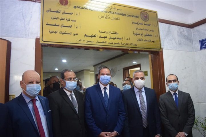 افتتح اللواء طارق الفقي محافظ سوهاج، والدكتور أحمد عزيز عبد المنعم رئيس الجامعة، صباح اليوم، وحدة الدكتور إسماعيل عبد العليم للحالات الحرجة بقسم طب الأطفال بالمستشفى الجامعي، والتي تم تجهيزها بكافة الإمكانيات الطبية بتكلفه ١١ مليون جنيه دعماً من مؤسسة بنك مصر لتنمية المجتمع.