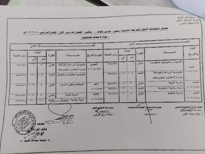 أما يوم الخميس الموافق 31 ديسمبر 2020 تكنولوجيا الزراعة والصناعة وادارة الأعمال وامتحان تكنولوجيا المعلومات والاتصال.
