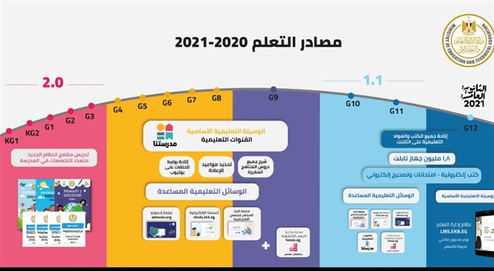 أكدت وزارة التربية والتعليم والتعليم الفني، انه مع قرار استكمال تدريس المناهج الدراسية بنظام التعليم عن بعد اعتباراً من السبت ٢ يناير ٢٠٢١، وحتى نهاية الفصل الدراسي الأول، يستطيع الطلاب في مختلف المراحل المذاكرة من الوسائل التعليمية المتعددة التي تتيحها وزارة التربية والتعليم والتعليم الفني ومنها: