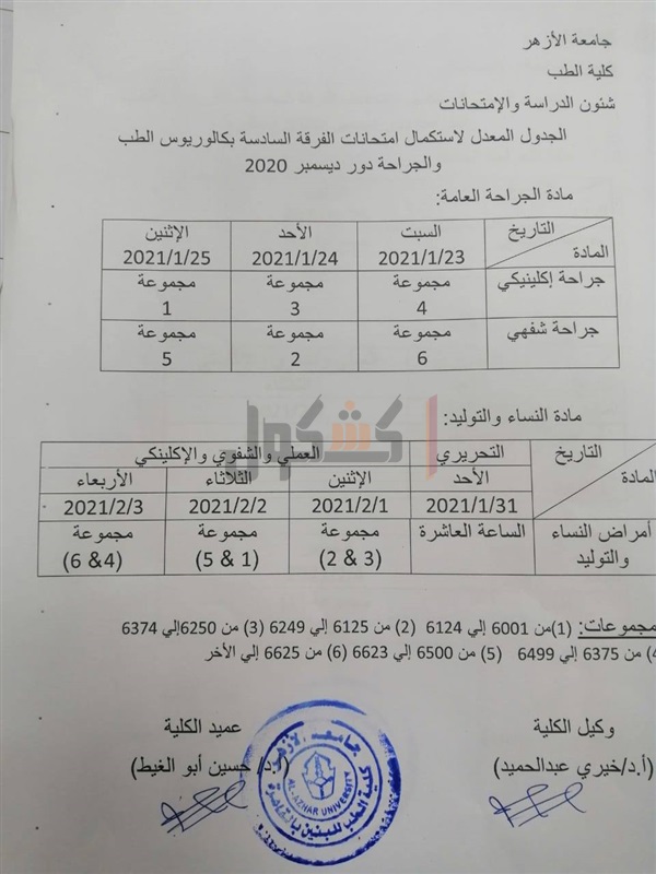 الجراحة العامة على 6 مجموعات تتنهى فى السادس والعشرون من الشهر ذاته.