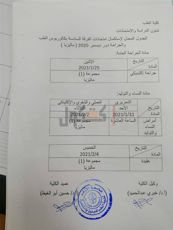 ننشر جداول امتحانات بكالريوس طب الأزهر للمصريين والوافدين