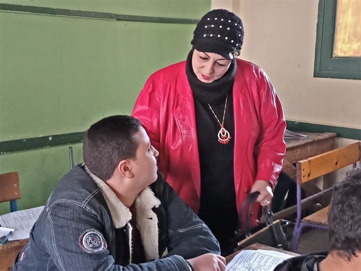 وأطمأنت إبراهيم على الطلاب الذين يؤدون الإمتحان بالمدرسة،