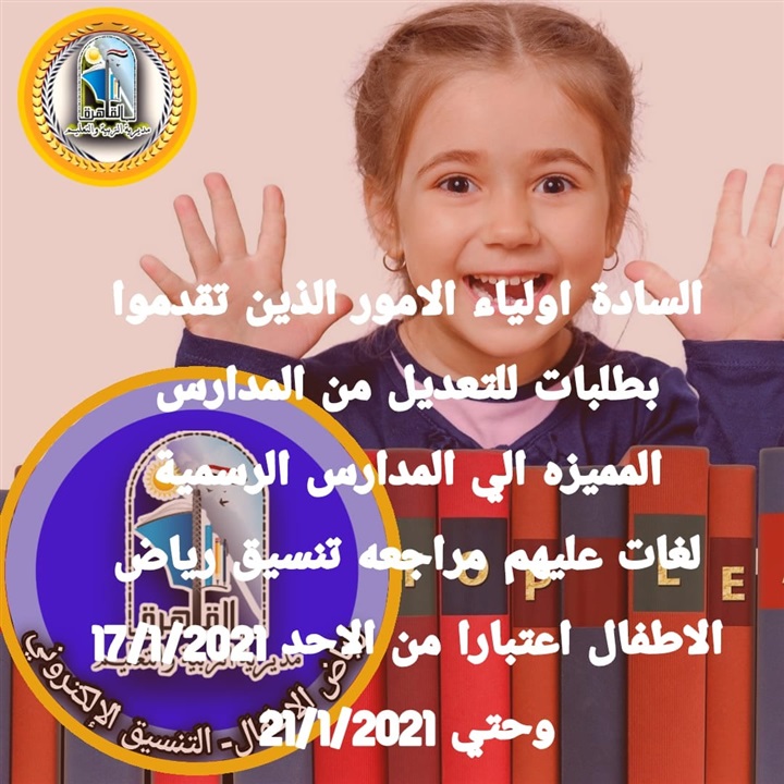وأكد وكيل الوزارة علي أولياء الذين تقدموا بطلبات للتعديل من المدارس المميزة إلى المدارس الرسمية لغات سرعة مراجعة تنسيق رياض الأطفال فى الفترة