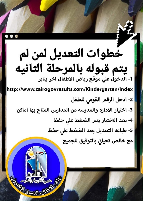 أعلنت مديرية التربية والتعليم بالقاهرة، خطوات تعديل الرغبات للطلاب الذين لم يتم قبولهم بالمرحلة الثانية بتنسيق رياض الأطفال بالتجريبيات، بدءاً من آخر الشهر الجاري.