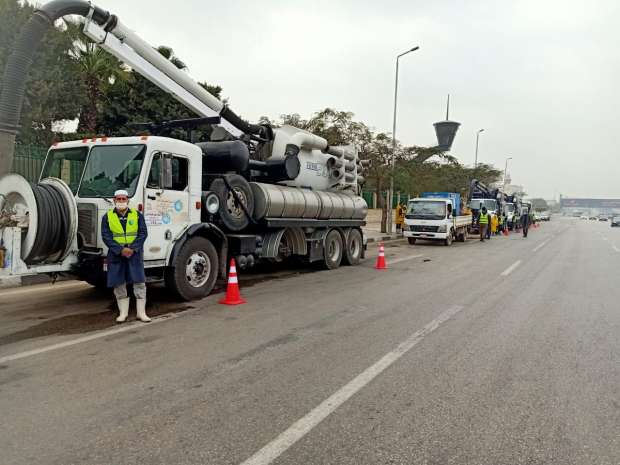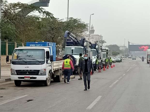 بالمحاور الرئيسية ومنازل ومطالع الكبارى والأنفاق لرفع تراكمات المياه حتى لاتؤثر