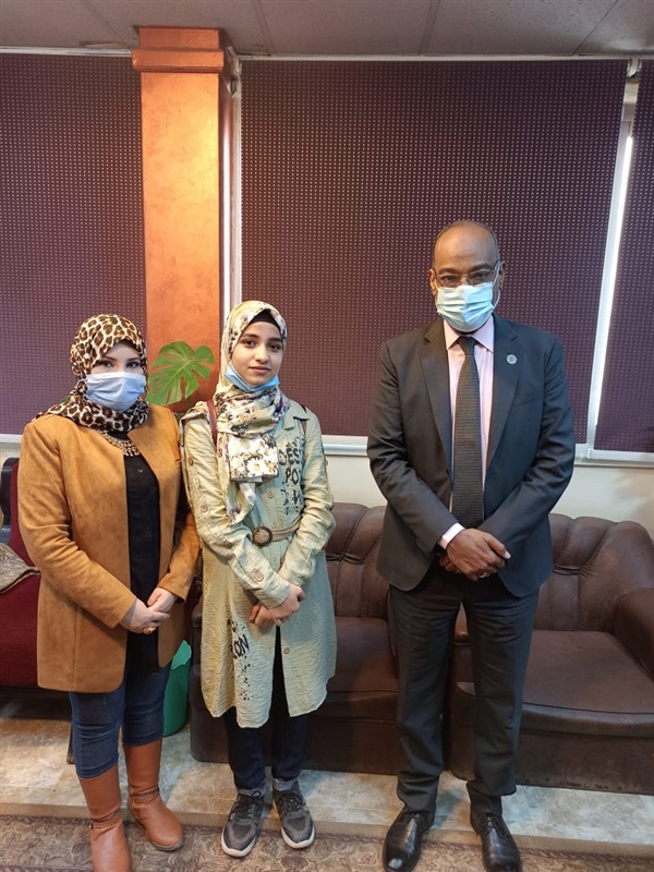 استقبل اليوم الدكتور أكرم حسن وكيل وزارة التربية والتعليم بالفيوم بمكتبه بديوان المديرية، الطالبة منه الله مصطفي عبدالحميد، الصف الثالث الإعدادي، مدرسة عثمان بن عفان للتعليم الأساسي إدارة سنورس التعليمية وذلك لموهبتها الفنية المتميزة في مجال الرسم.
