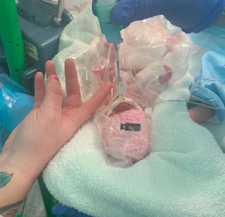 ووصف الاطباء الكفاة بأنها في حجم" كف اليد"، لذا فقرر الطاقم الطبي وضع الطفلة في كيسا بلاستيكيا نظرا لحجمها الصغير، ليوفروا لها بيئة مناسبة للتنفس، وبالفعل نجحوا في ذلك.