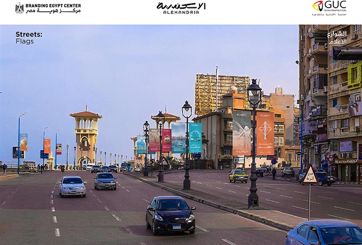 هذا وقد عكف فريق مركز هوية مصر بالجامعة الذي يضم أعضاء هيئة التدريس و الطلاب ببرامج الهندسة المدنية والمعمارية والفنون التطبيقية وتكنولوجيا الإدارة بالتنسيق مع اللجنة العلمية المشكلة من قبل المحافظة و تضم أعضاء هيئة تدريس بأقسام العمارة والأثار و الفنون الجميلة بالجامعات و مستشاري السياحة والتي بدأت أعمالها فور توقيع بروتوكول التعاون بين الجانبين– الجامعة الألمانية بالقاهرة ومحافظة الإسكندرية في شهر فبراير 2020 على إعداد تصاميم حديثة نابعة من تاريخ وحضارة المدينة ، مستخدمين فى تنفيذها أحدث التقنيات ثلاثية الأبعاد و مفردات بصرية الوانها مستوحاة من البيئة المحيطة إضافة إلى تصميم خط كتابى خاص للمحافظة بجانب أحرف خطوطها اللغوية المستخدمة التى تنم عن كافة أطيافها التراثية بدءاً من اليونانية و الرومانية و القبطية و الاسلامية والعربية وصولا للمعاصرة لكى تصبح نافذة مستحدثة يطل منها الزائر فيرى معالم عروس البحر الأبيض المتوسط فى رداء جديد ، مزج فيها بحرفية فريق العمل تصاميم مبتكرة متناغمة ليطلقها على معالم المدينة البارزة لزائريها كأسوار الكورنيش وبرجولاته ومقاعده - منطقة بئر مسعود - أبراج الإنقاذ المنتشرة على الشواطئ وملابس العاملين بها ، الميادين العامة و اللافتات المضيئة و اعلانات الطرق اللوحات الإرشادية - بوابات الإسكندرية ومداخل ومخارج أنفاق محطة مصر ، وسائل النقل المتنوعة و أماكن الانتظار- أحواض الزهور - صناديق القمامة ، الهدايا التذكارية (الدبابيس – طوابع – الحقائب) - واجهات المباني الأثرية كفنار الإسكندرية -الكنائس -المزارات -المتاحف -المعابد - الفنادق -المنتجات البصرية كالأعلام ، علاوة على إعداد فريق العمل حملة تسويقية مقترحة للمساهمة في دعم المدينة سياحياً و يكلل هذا العمل بتصميم تطبيق إلكتروني يتيح للسائح الخدمة التي تمكنه من تحديد وجهته بمجرد وصوله للمحافظة .