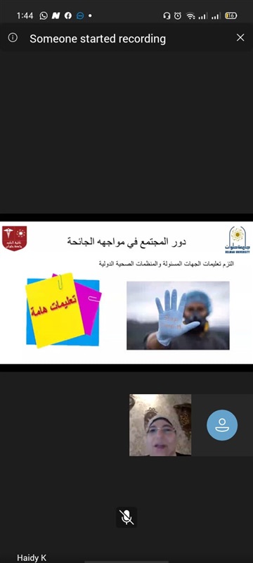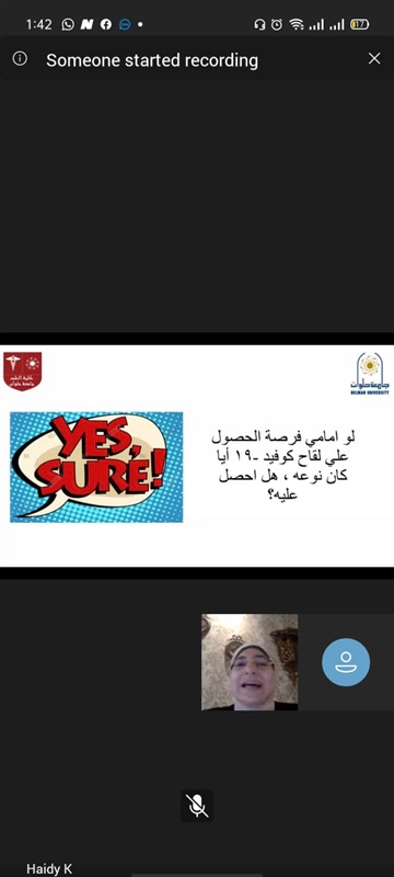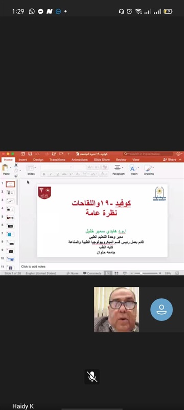 نظم اتحاد طلاب جامعة حلوان بالتعاون مع الإدارة العامة لرعاية الشباب ندوة عن فيروس كورونا واللقاحات الخاصة به، وذلك تحت رعاية الدكتور ماجد نجم رئيس جامعة حلوان، والدكتور حسام رفاعي نائب رئيس الجامعة لشئون التعليم والطلاب، والدكتور ممدوح مهدي عميد كلية الطب، والدكتورة صفاء صلاح عميد كلية التمريض، يأتى ذلك فى إطار التوعية بكافة المعلومات والمستجدات عن فيروس كورونا المستجد، وحاضر فى الندوة الدكتورة هايدي سمير رئيس قسم الميكروبيولوجى بكلية الطب بجامعة حلوان.
