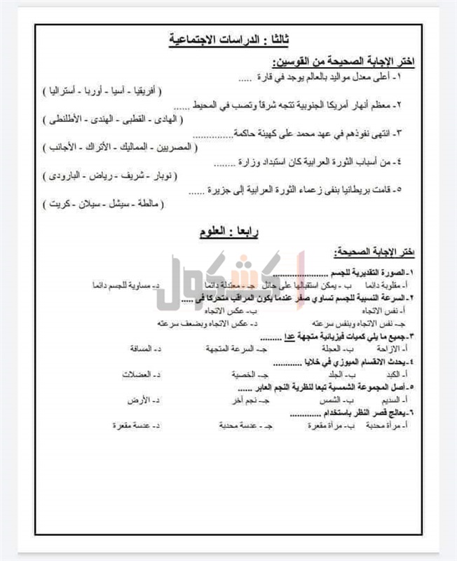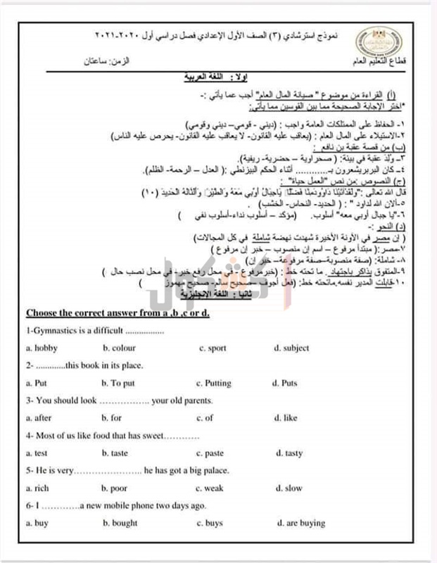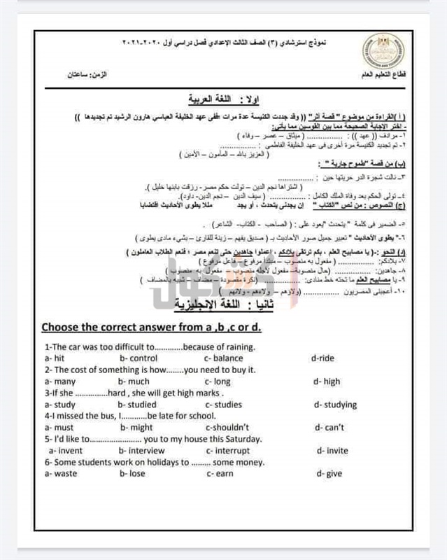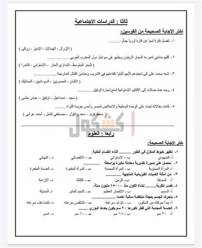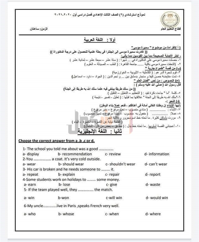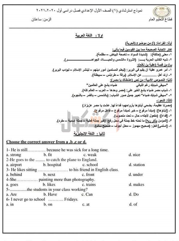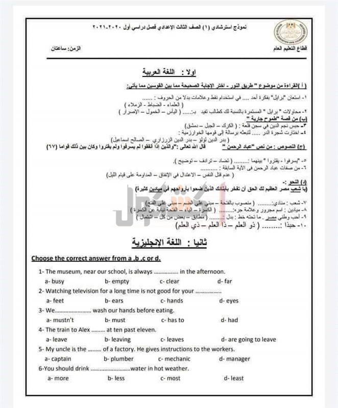 ننشر النماذج الاسترشادية للامتحانات المجمعة لطلاب الإعدادية«صور»