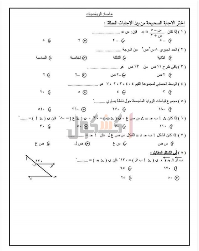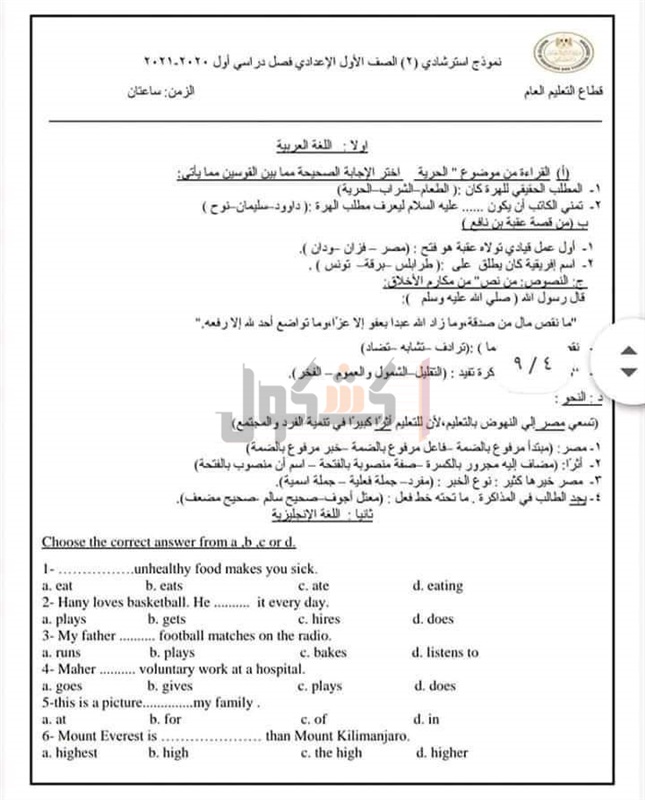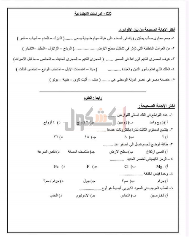 حصل «كشكول» علي صور للنماذج الاسترشادية للامتحان المجمع للفصل الدراسي الأول للعام الدراسي الحالي 2020/2021؛ للمرحلة الإعدادية.