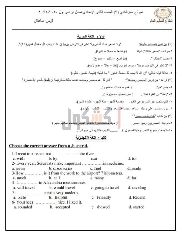 كشكول: ننشر صور النماذج الاسترشادية لطلاب الصف الأول الإعدادي (kashqol.com)