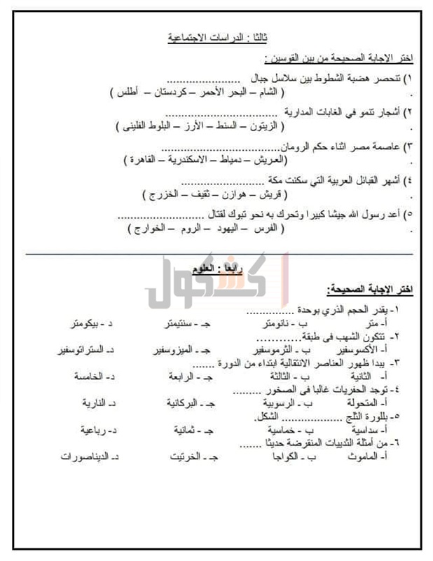 كشكول: ننشر صور النماذج الاسترشادية لطلاب الصف الرابع الابتدائي (kashqol.com)