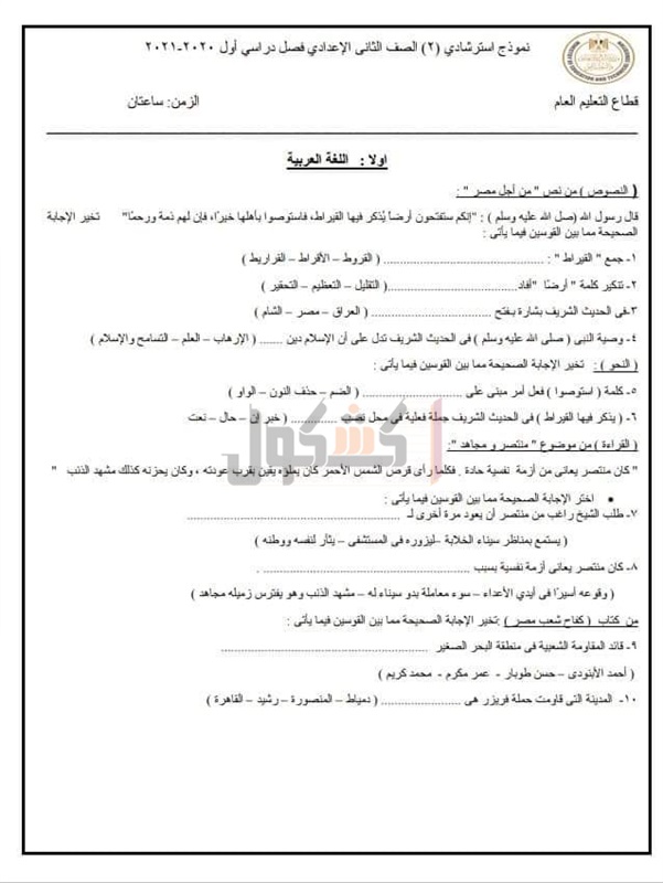 ننشر صور النماذج الاسترشادية لطلاب الصف الثاني الإعدادي