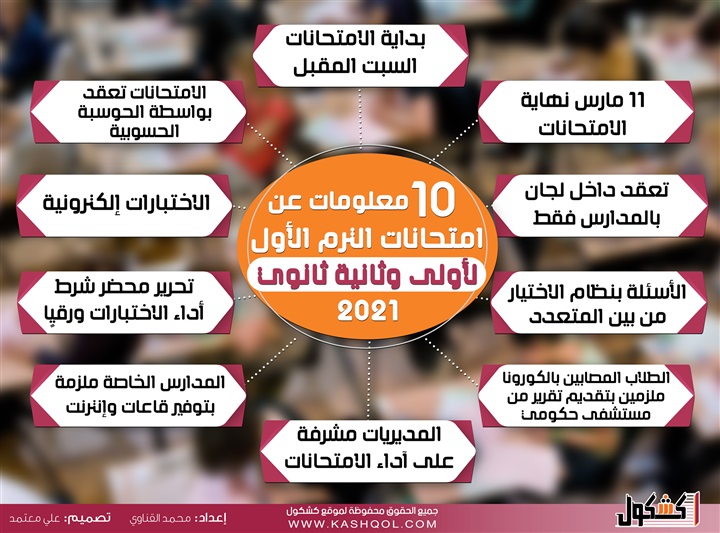 نرصد في الانفوجراف التالي 10 معلومات عن امتحانات الترم الأول لأولى وثانية ثانوي 2021.