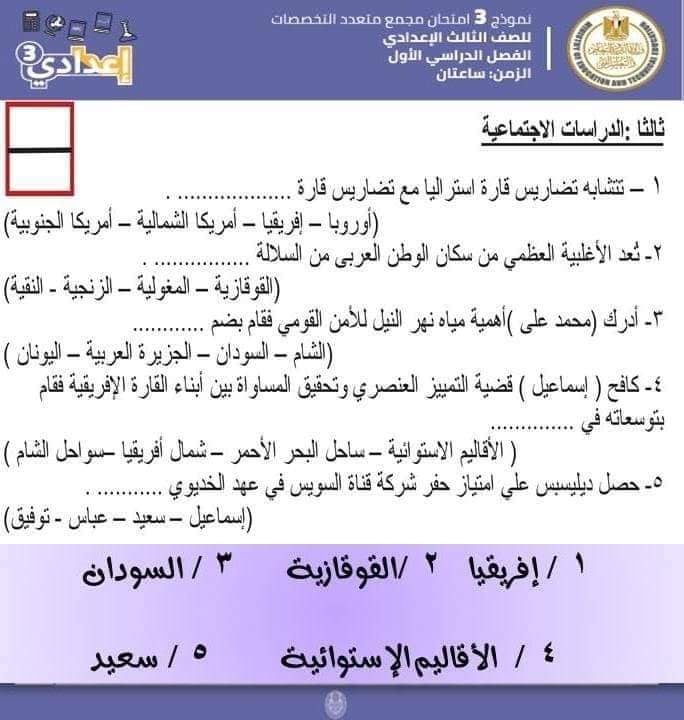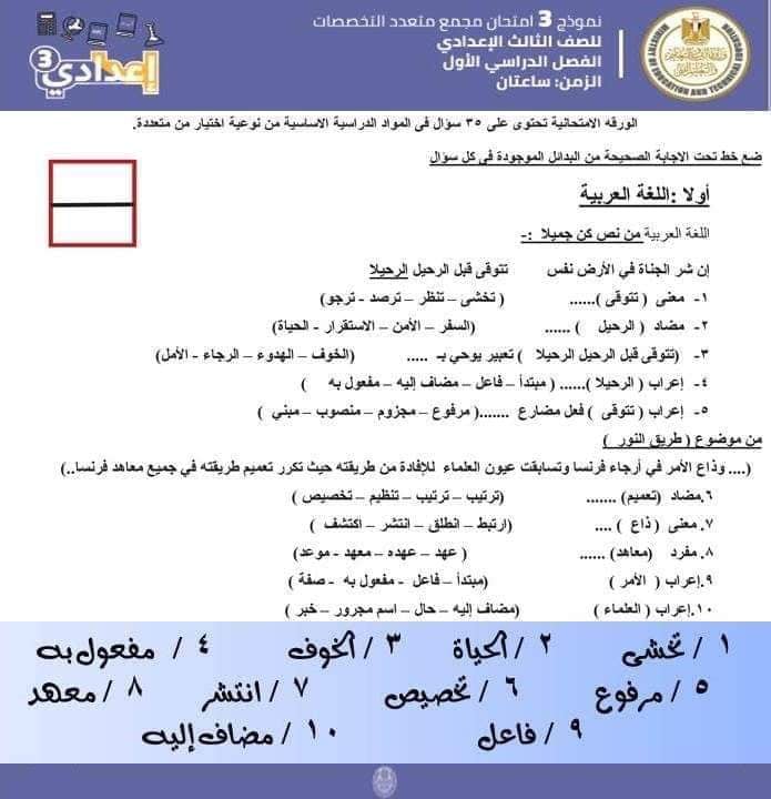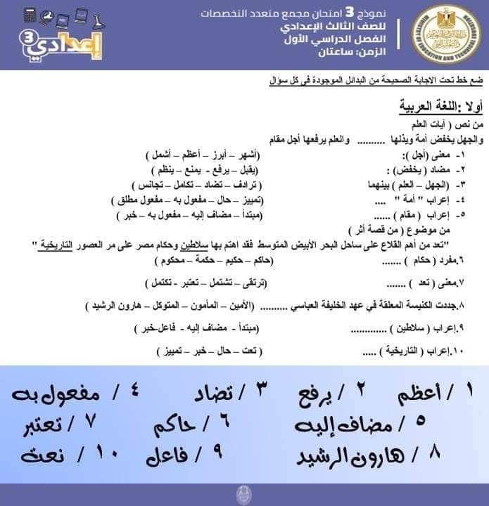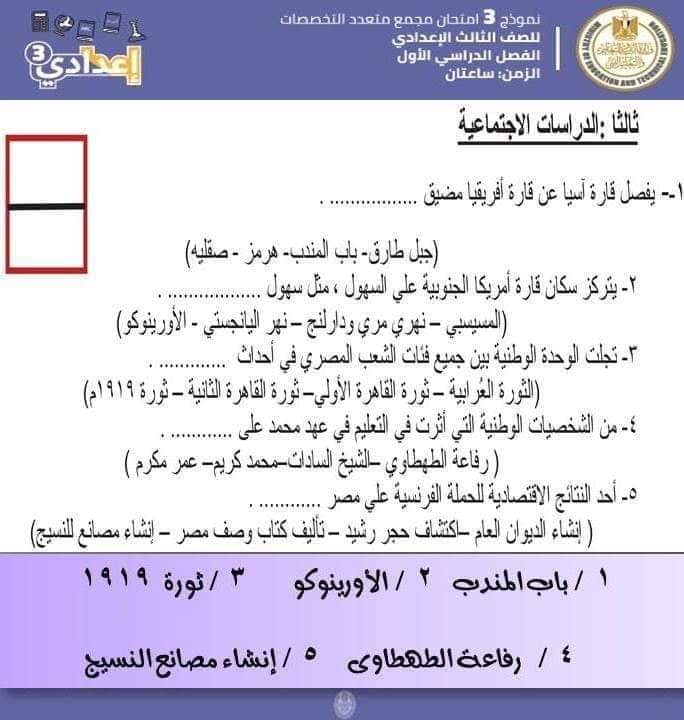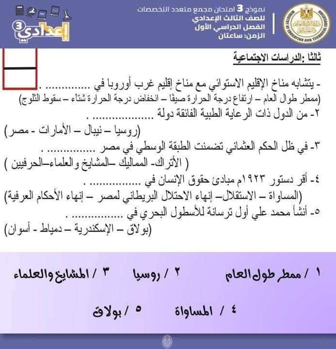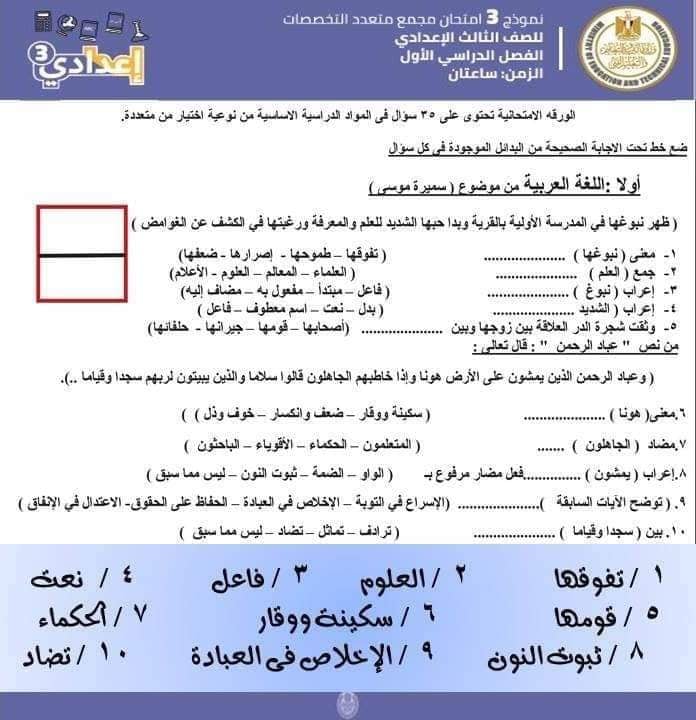 بالصور.. نماذج امتحانات الثالث الإعدادى الترم الأول