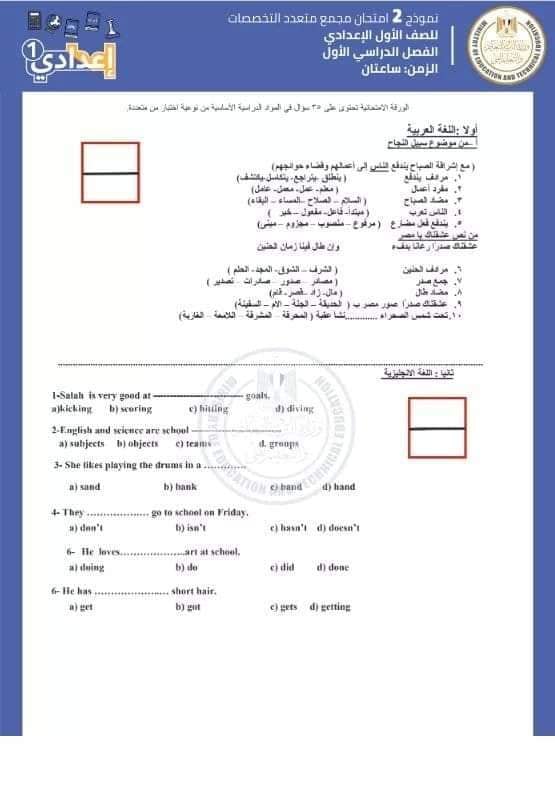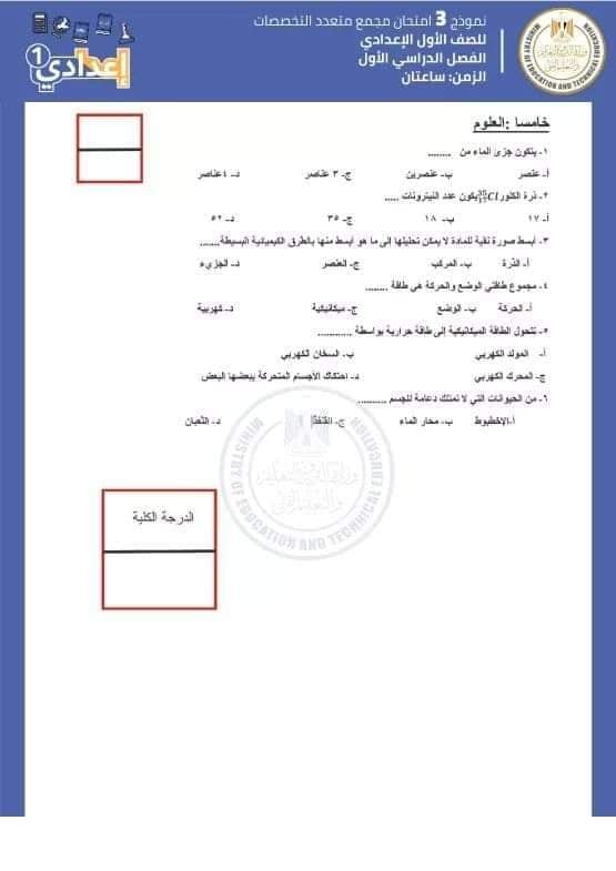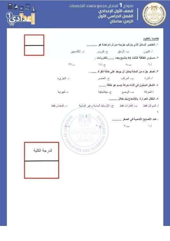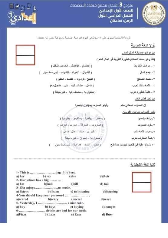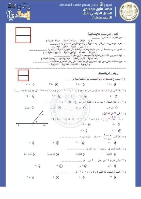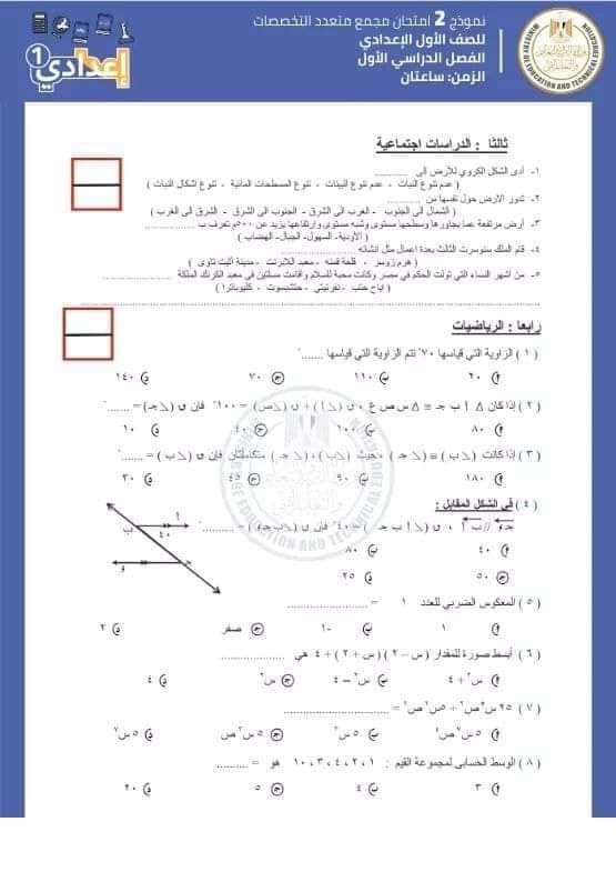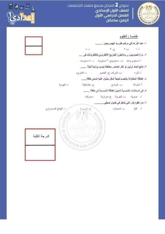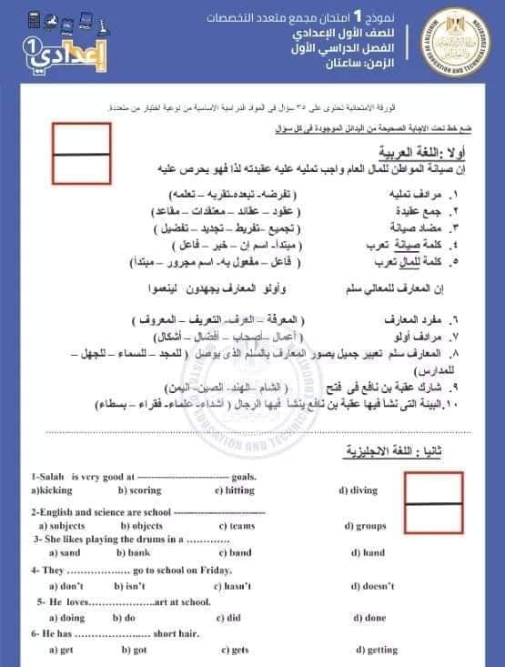 اعلنت وزارة التربية والتعليم والتعليم الفني، النماذج الاسترشادية، للصف السادس الابتدائي، عن منهج الفصل الدراسي الأول، استعدادآ للامتحانات المجمعه متعددة المتخصصات، عن منهج الفصل الدراسي الأول.