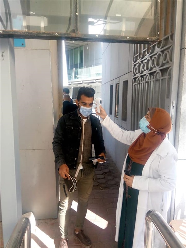 بين كل طالب والآخر، وقياس درجات الحرارة للطلاب قبل الدخول للمبانى ولجان الامتحان،