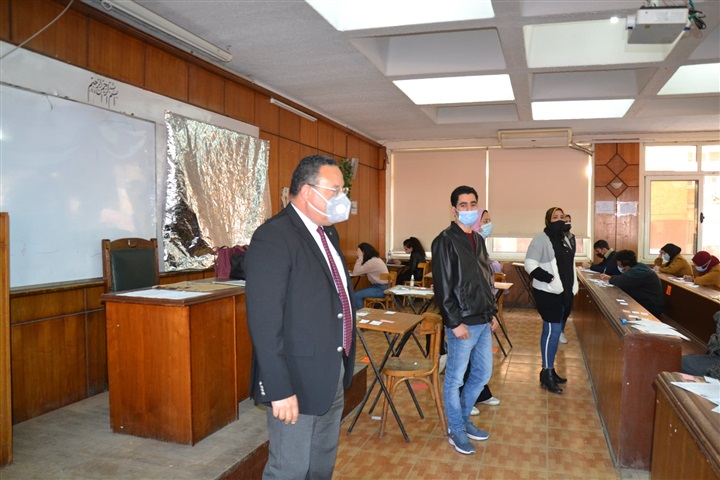 لتفقد سير أعمال الامتحانات، والاطمئنان على الإلتزام بكافة الإجراءات الاحترازية والوقائية.