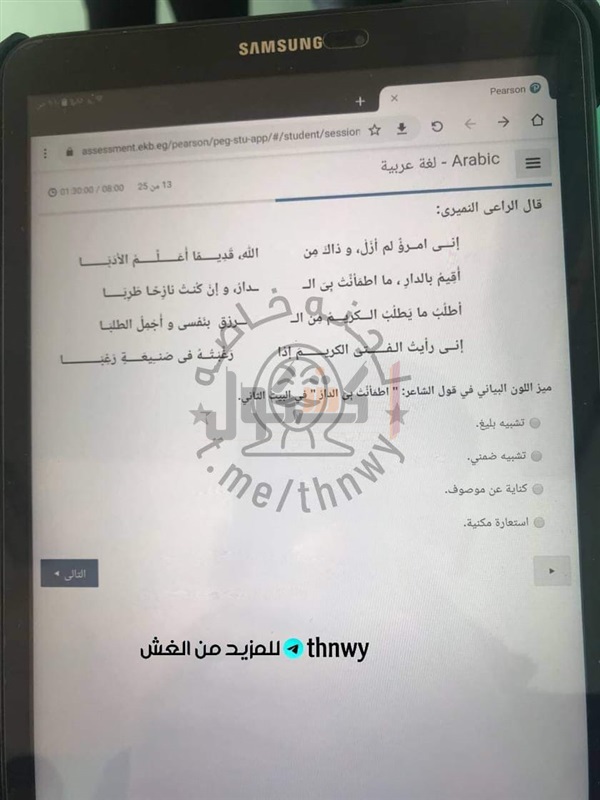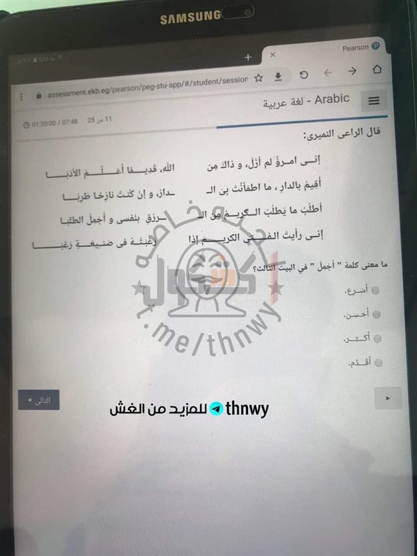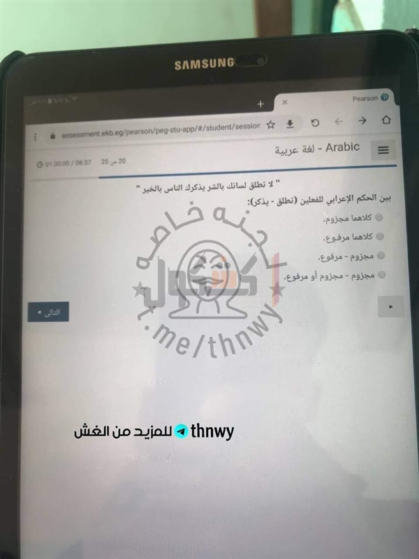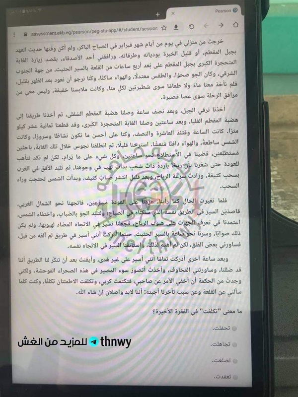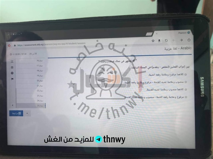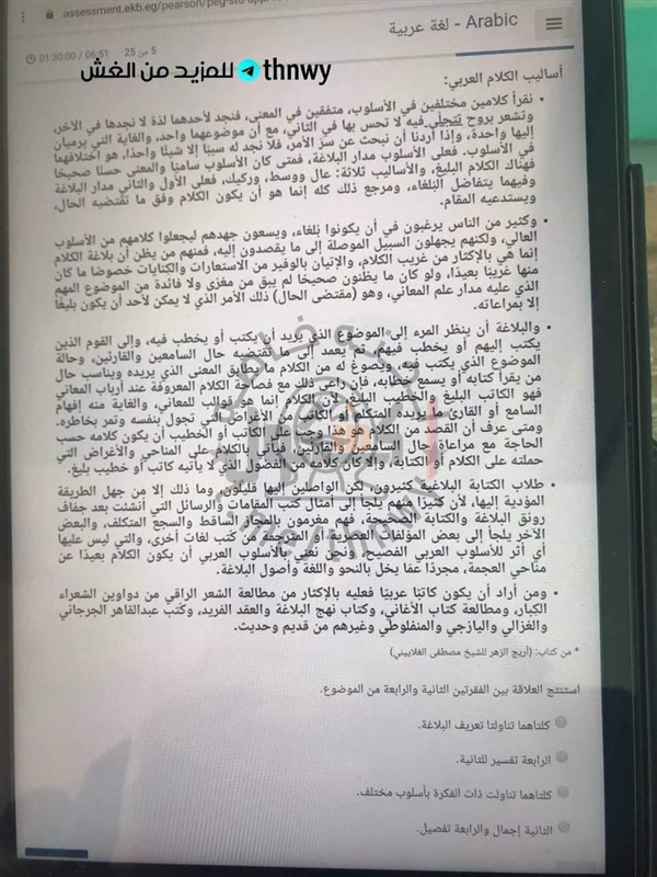 تداول عدد من طلاب الصف الثاني الثانوي، صورا لاسئلة الامتحان الإلكتروني لمادة اللغة العربية، الذي يؤدية الطلاب حاليا داخل اللجان الامتحانية بمدارس الجمهورية.