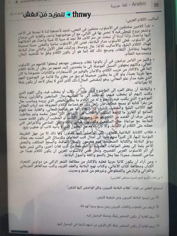 تسريب امتحان اللغة العربية للثاني الثانوي