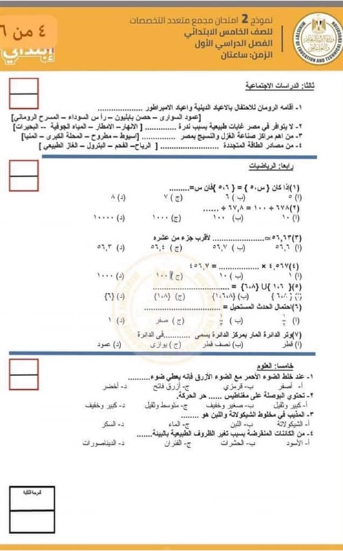 قد ادي تلاميذ الصف الرابع الابتدائي أول الامتحانات المجمعة متعددة التخصصات، على