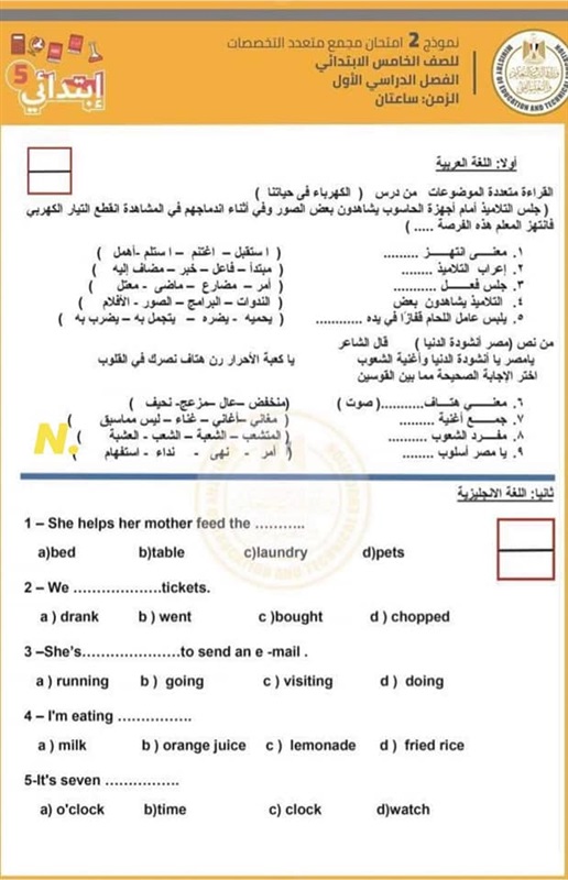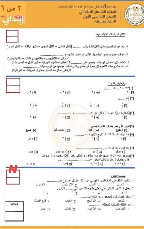 وللإطلاع على نماذج امتحانات الصف الخامس الابتدائى الترم الأول 2021، شاهد الصور المرفقة.
