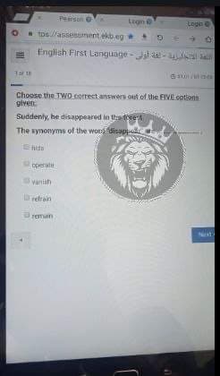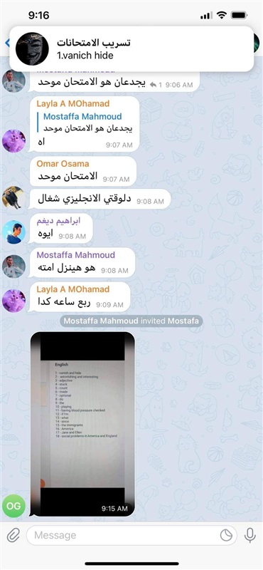 تداول عدد من طلاب الصف الأول الثانوي، صورا لاسئلة الامتحان الإلكتروني لمادة اللغة الأجنبية الأولى "الإنجليزية"، الذي يؤديه الطلاب حاليا داخل اللجان الامتحانية بمدارس الجمهورية.