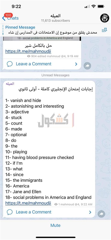 تداول إجابات اللغة الإنجليزية للأول الثانوي عبر التليجرام «صور»