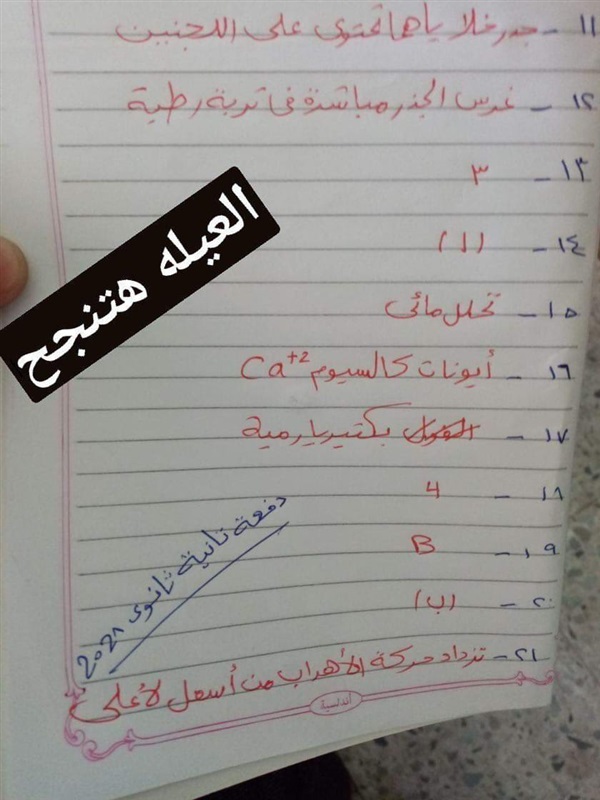 تداول عدد من الرواد صور لإجابات الامتحان الإلكتروني لمادتي الفلسفة والمنطق، والأحياء من داخل لجان طلاب الصف الثاني الثانوي حاليا داخل اللجان الامتحانية بمدارس الجمهورية.