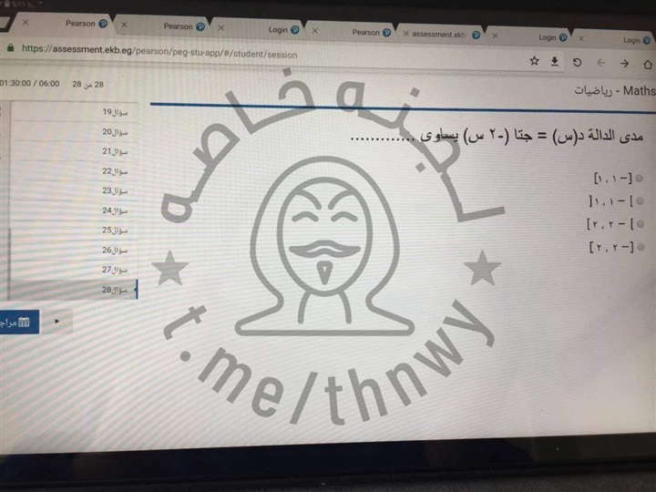تداول منذ قليل طلاب الصف الأول الثانوي، صورا من الامتحان الإلكتروني لامتحان الرياضيات، المقام حاليًا في ثالث ايام امتحانات الفصل الدراسي الأول إلكترونيا عبر أجهزة التابلت، بلجان معقمة ومأمنة بالمدارس، تحسبا لانتشار فيروس كورونا.