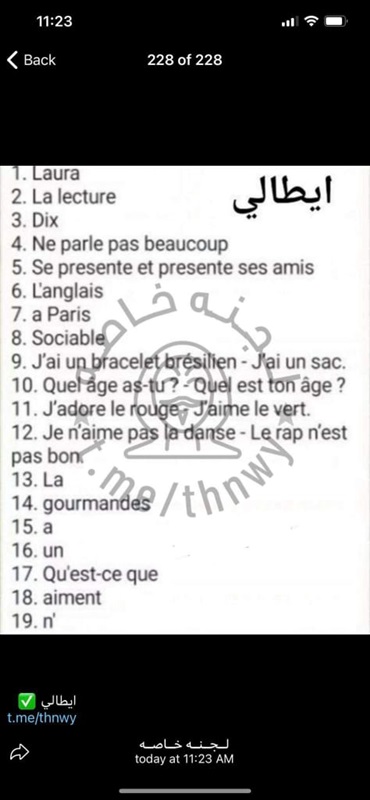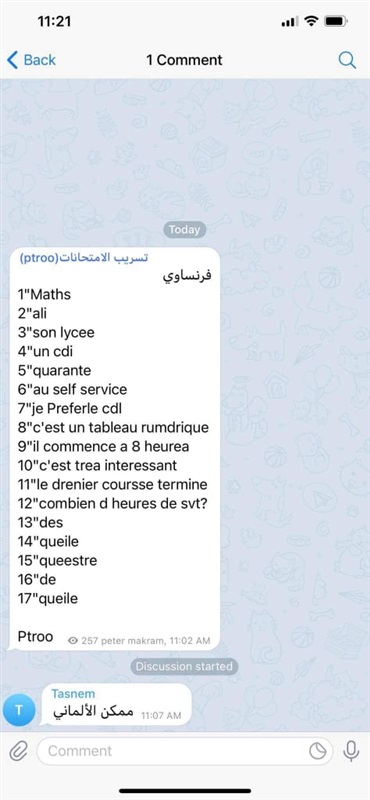 تداول إجابات مادة اللغة الأجنبية الثانية لطلاب الأول الثانوي عبر التليجرام.. صور