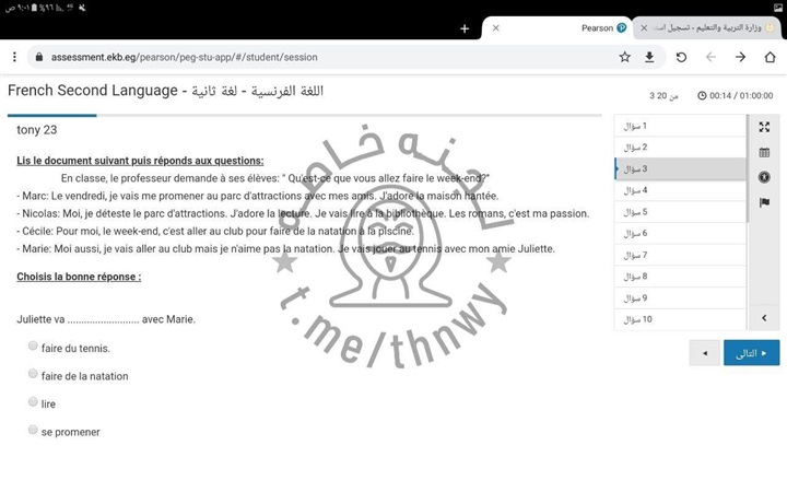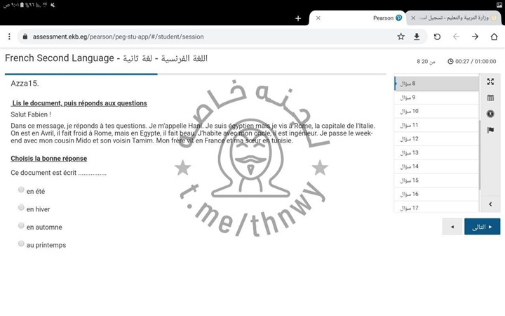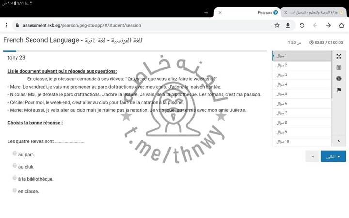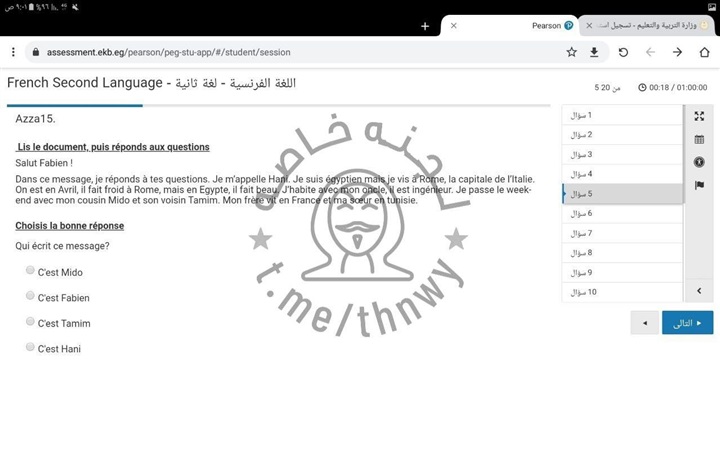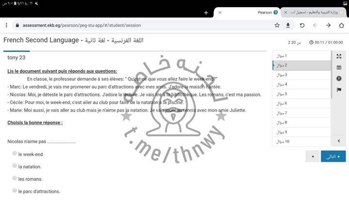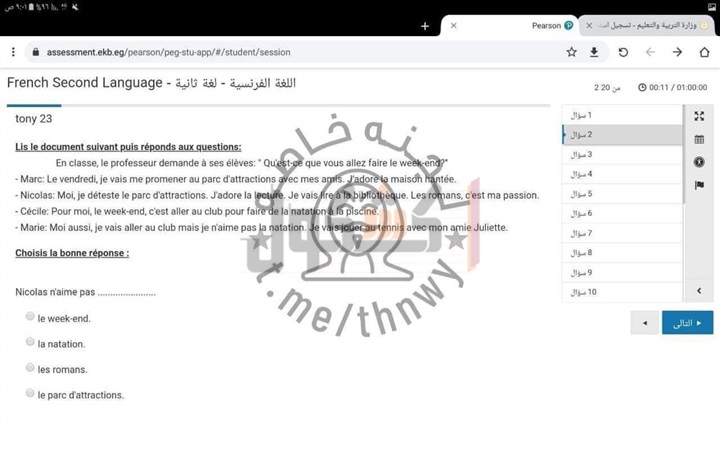 تداول عدد من طلاب الصف الثاني الثانوي، الامتحان الإلكتروني اللغة الأجنبية الثانية، من داخل اللجان ، الذي يؤديه الطلاب حاليا إلكترونيا عبر أجهزة التابلت، بلجان معقمة ومأمنة بالمدارس، حفاظاً عليهم من فيروس كورونا.