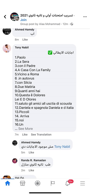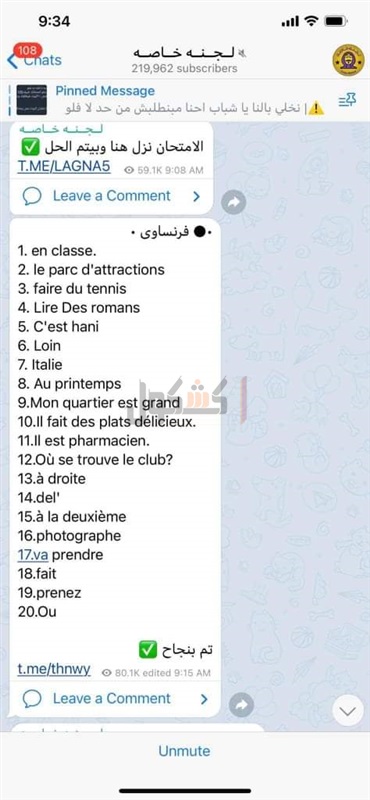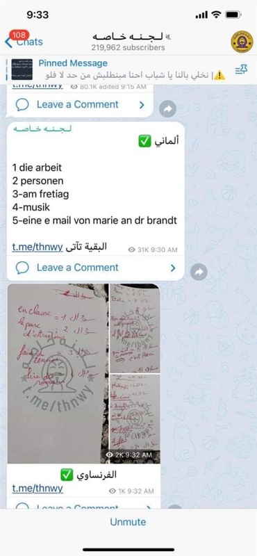 تداول إجابات اللغة الأجنبية الثانية للثاني الثانوي عبر التليجرام (صور)