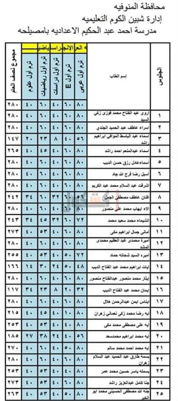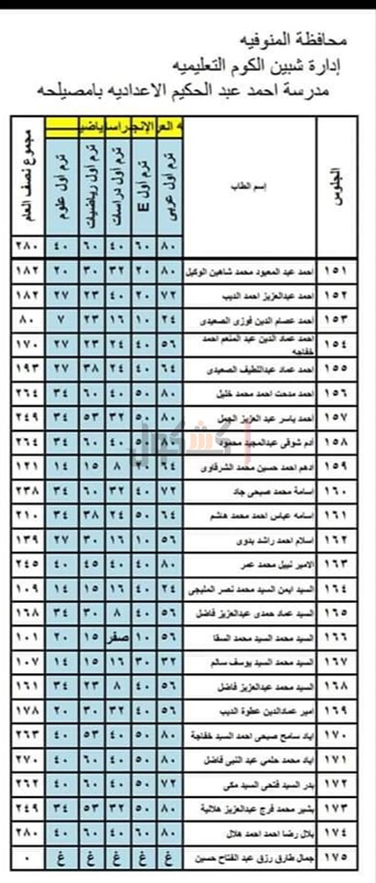 الخامس الابتدائي، والصف السادس الابتدائي، والصف الأول الإعدادي، والصف الثاني الإعدادي،