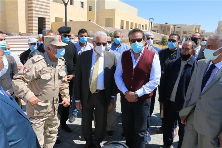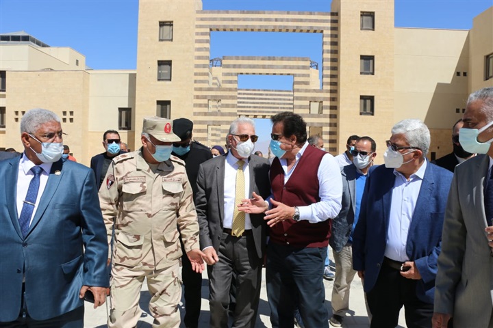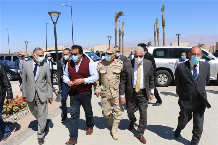 أجرى الدكتور خالد عبدالغفار وزير التعليم العالي والبحث العلمي، صباح اليوم الأحد، جولة تفقدية لجامعة الملك سلمان الدولية بمدينة الطور، يرافقه اللواء خالد فودة محافظ جنوب سيناء، والدكتور أشرف حسين رئيس جامعة الملك سلمان الدولية، والدكتور السيد الشرقاوي رئيس جامعة السويس، والدكتور أيمن عاشور نائب الوزير لشئون الجامعات، والدكتور أنور إسماعيل مساعد الوزير للمشروعات القومية، وعدد من قيادات المحافظة والهيئة الهندسية للقوات المسلحة، وعمداء الكليات، وأعضاء مجلسي النواب والشيوخ بالمحافظة، وذلك في إطار متابعته للمشروعات القومية للتعليم العالي، وللاطمئنان على استعداد الجامعة لتشغيل المقر الرئيسي للجامعة، اعتبارًا من العام الجامعي 2021-2022.