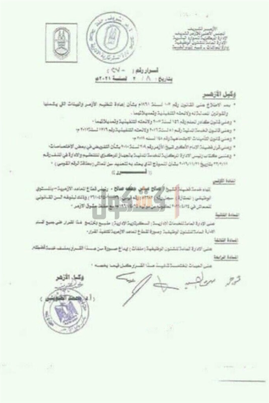 الأزهر يُنهي خدمة رئيس المعاهد قبل بلوغ سن المعاش بشهر ونصف.. مستند