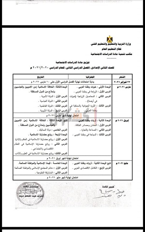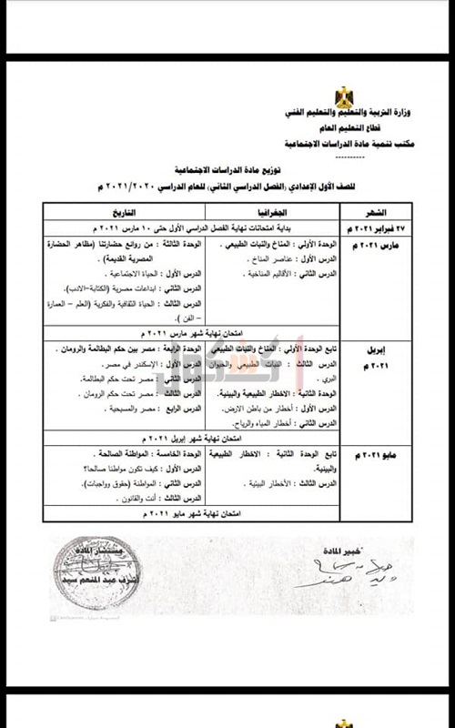 الدراسي 2020/2021، بامتحانات شهرية في "مارس وابريل ومايو".