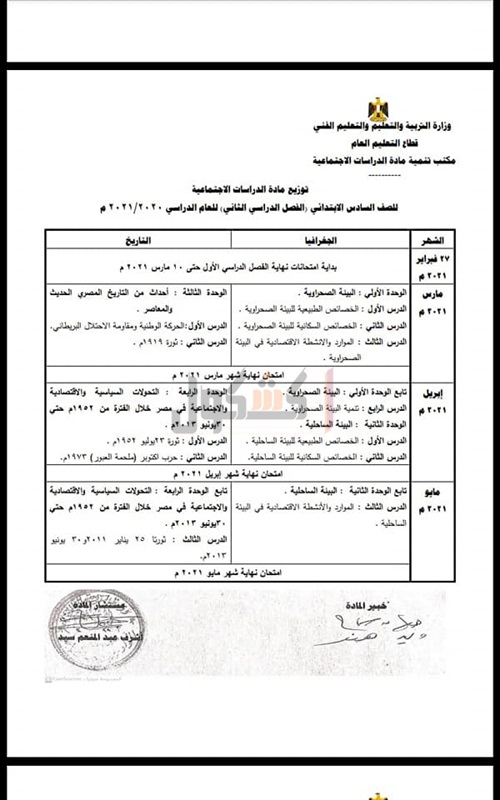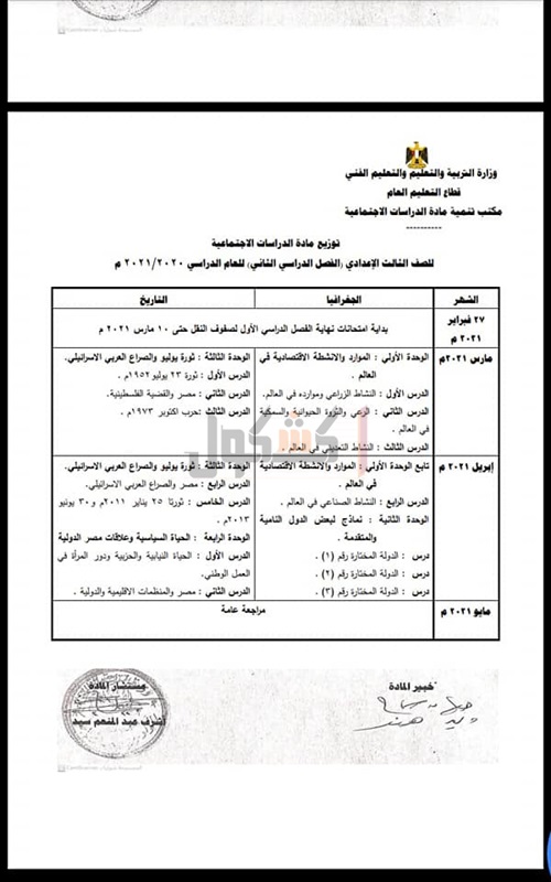 توزيع مادة الدراسات الاجتماعية من الصف الرابع الإبتدائي حتى الثالث الإعدادي