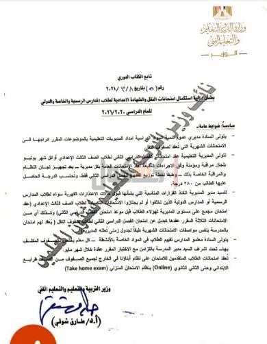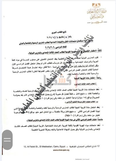 كما حدد الكتاب الدوري، طرق تقييم امتحانات الهوية القومية لطلاب المدارس الدولية بالصف الثالث الإعدادي للعام الدراسي ٢٠٢٠ - ٢٠٢١.