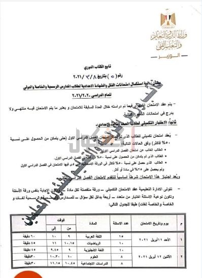 الإعدادي أوائل شهر يونيو بلجان مراقبة ومؤمنة وكنترولات على مستوى الجمهورية وفق الإجراءات
