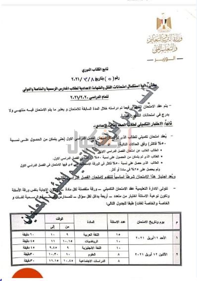 الإعدادي بالمدارس الدولية، وفق جدول الشهادة الإعدادية والمُعد بمعرفة المديرية التعليمية.