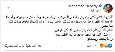 محمد هنيدي عن فيديو متحرش "طفلة المعادي": مرعب لدرجة مخيفة