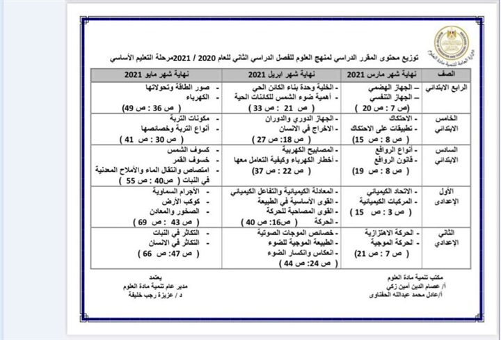 توزيع دراسة المنهج على أشهر مارس وأبريل ومايو لصفو الدراسية النقل والشهادات.