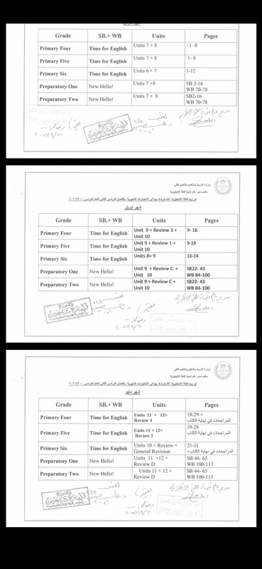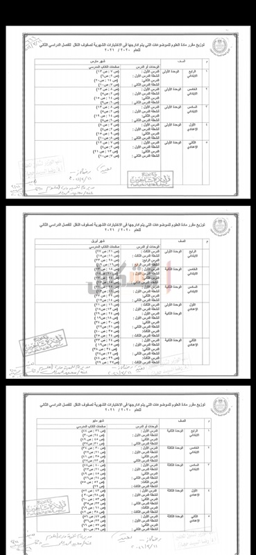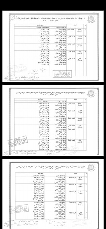 على ان تعقد امتحانات ورقية مجمعة في آخر كل شهر في المدرسة من مارس إلى مايو للصفوف من الرابع الابتدائي وحتى الثاني الإعدادي بديلاً عن امتحانات الترم الثاني.
